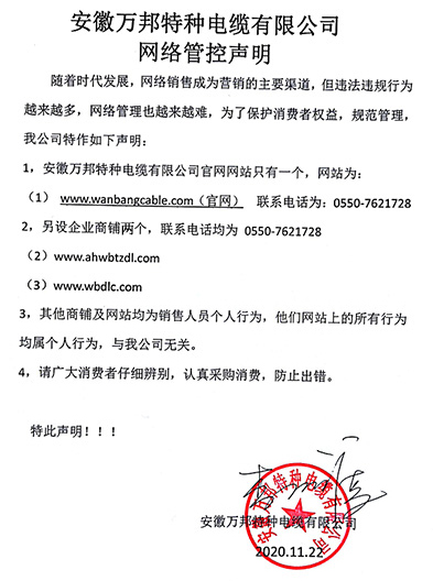 鄭重聲明:安徽萬邦特種電纜有限公司官方網站為:www_wanbangcable_com.8006nb.cn,除此之外無任何子網站或合作網站,其余均為假冒偽劣。電話:0550-7621728 13485756353 地 址:安徽省天長市滁州高新技術產業開發區經四路29號
